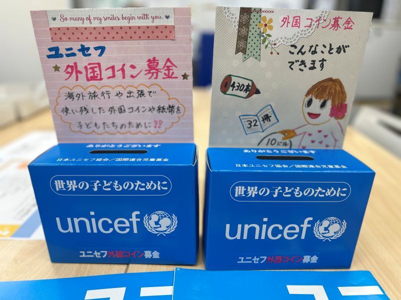 寄せられた外国コインは、世界の子どもたちへの支援活動につながります。ご協力よろしくお願いします。