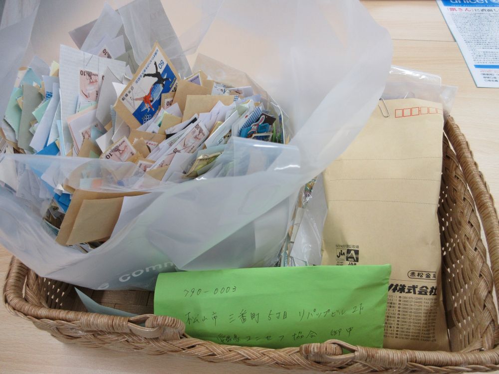 伊予高校の「国際ボランティアと国際平和」班の学生さんから使用済み切手をお預かりしました。小中学校にも呼びかけ集めてくださり心よりお礼申し上げます。