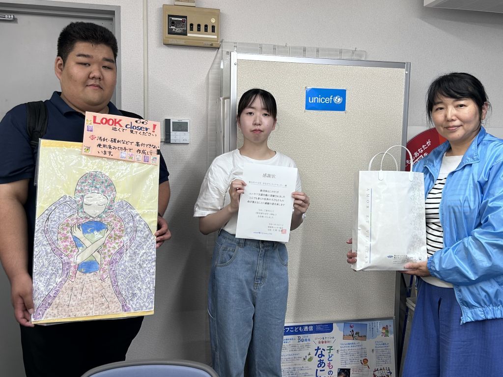 事前にユニセフの活動について調べてくれていたようで、募金への呼びかけにも熱がこもっていました。その後、集まった募金38,627円の使い道をどうするか話し合われ「一般募金と支援ギフト」に決まりました。学生の皆さんの想いにふれる貴重な機会となりました。ご協力ありがとうございました。