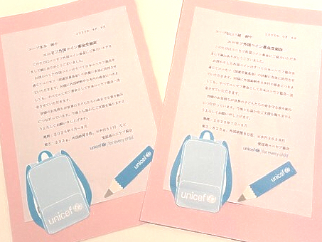 集まった募金27,900円は日本ユニセフ協会に送金いたしました。ご協力ありがとうございました。