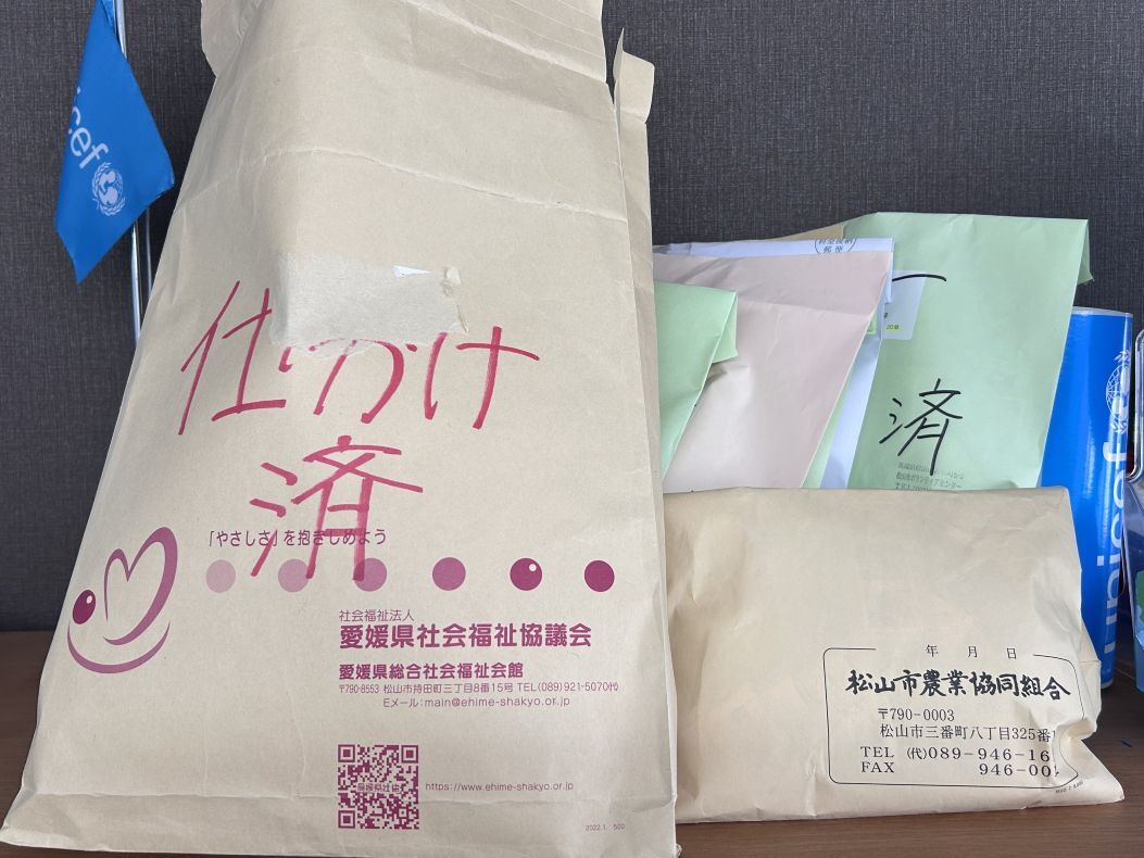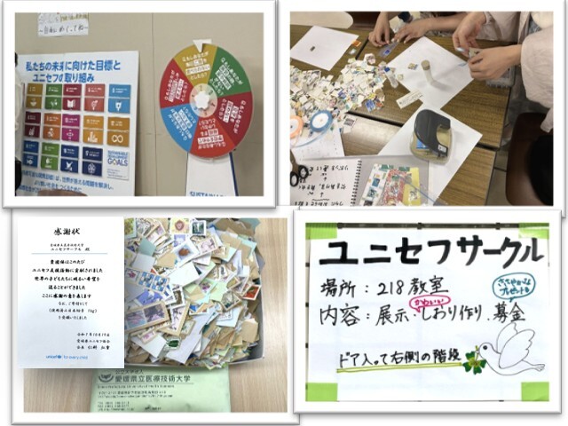 愛媛県立医療技術大学の大学祭にてユニセフサークルの取り組みとして、展示と使用済み切手の整理体験を行ってくれました。終了後に使用済み切手をお預かりしました。