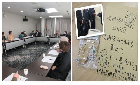 午後からは伊予高校の「国際ボランティアと国際平和」班の学生さんから使用済み切手をお預かりしました。小中学校にも呼びかけ集めてくださり心よりお礼申し上げます。