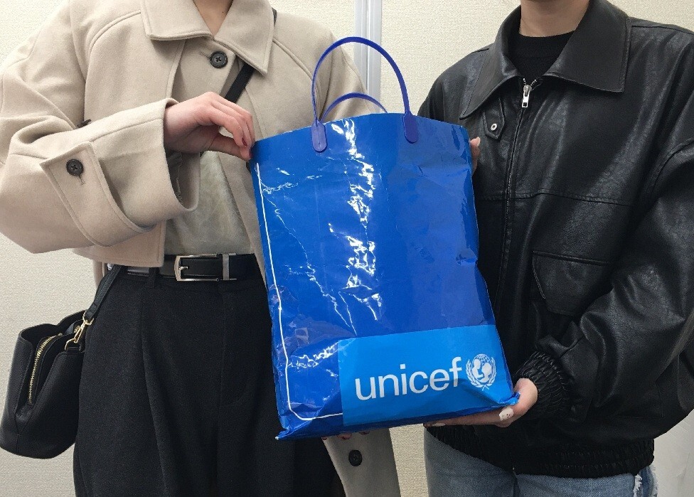事前にユニセフの活動について調べてくれていたようで、募金への呼びかけにも熱がこもっていました。その後、集まった募金38,627円の使い道をどうするか話し合われ「一般募金と支援ギフト」に決まりました。学生の皆さんの想いにふれる貴重な機会となりました。ご協力ありがとうございました。